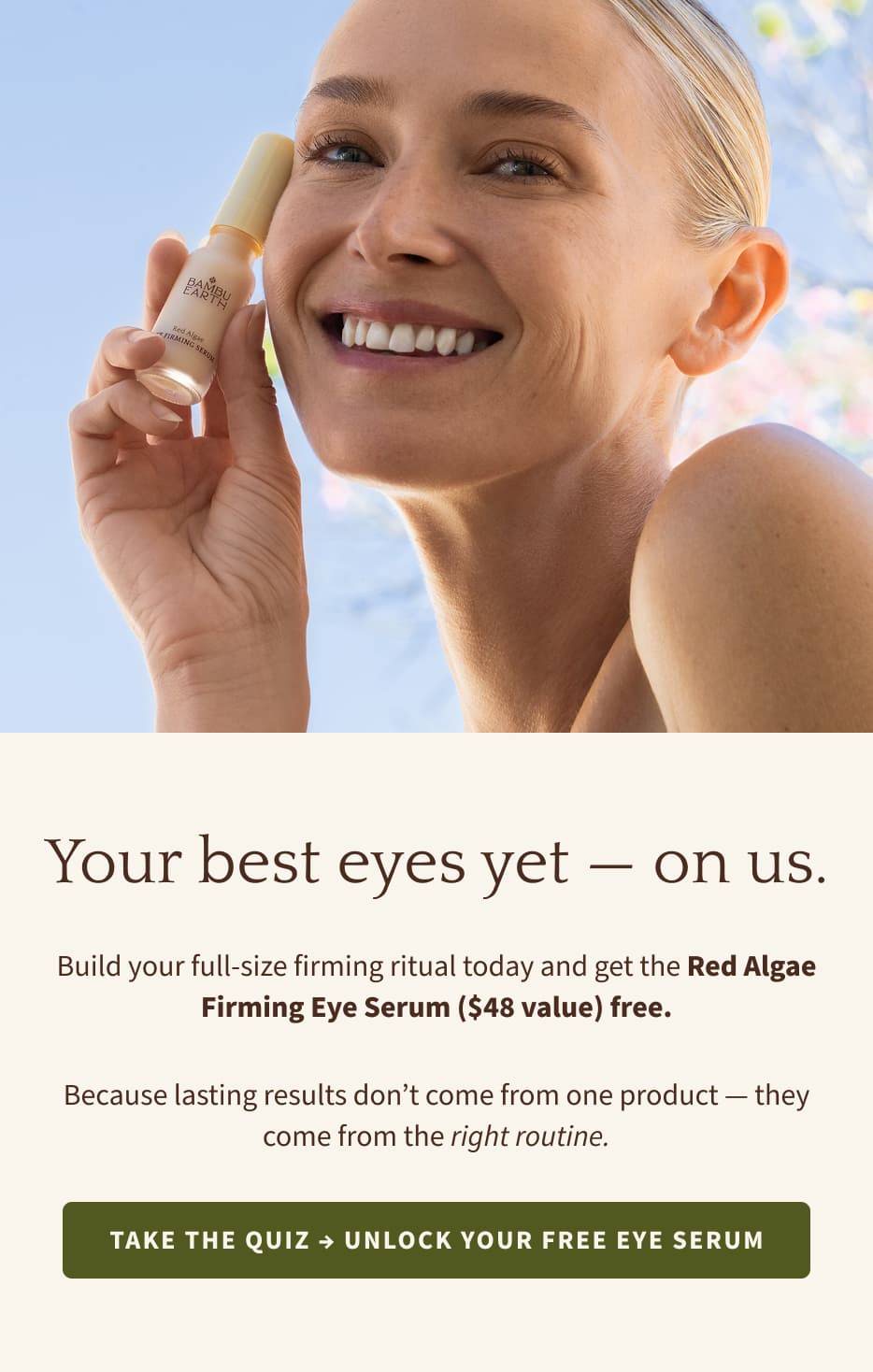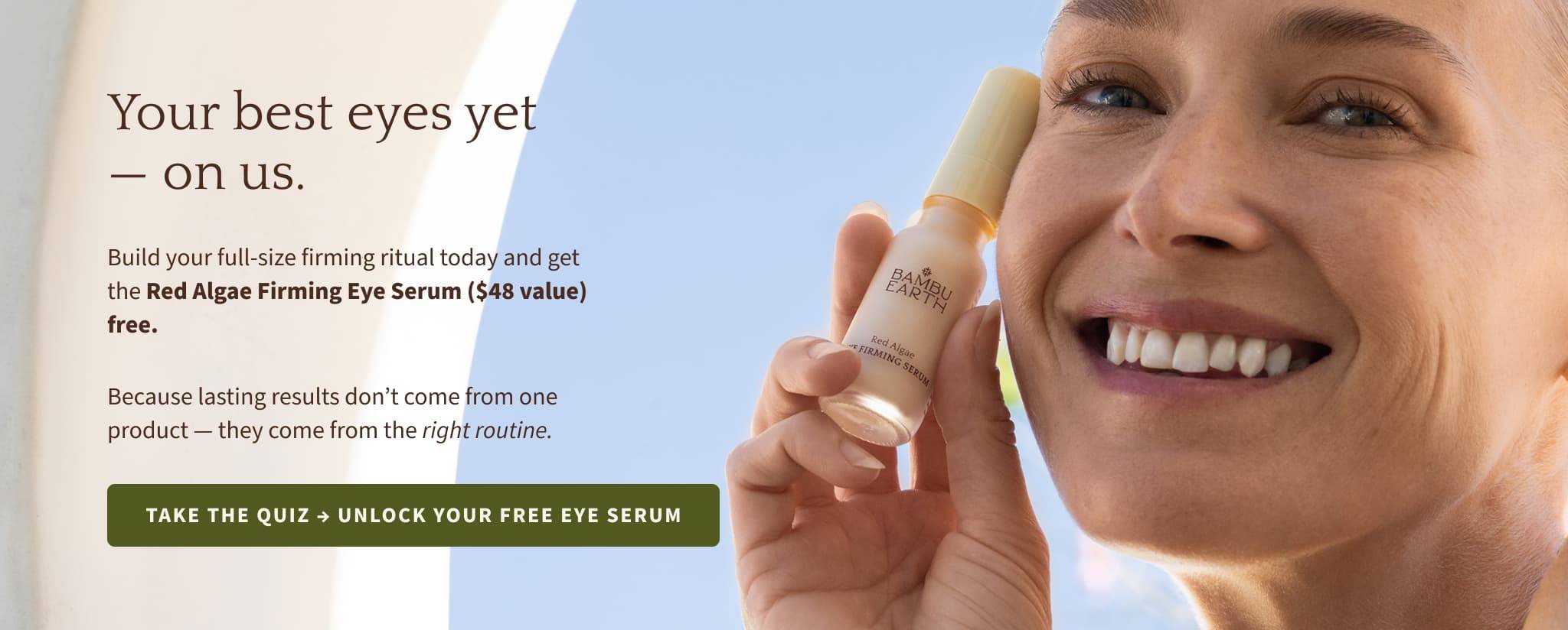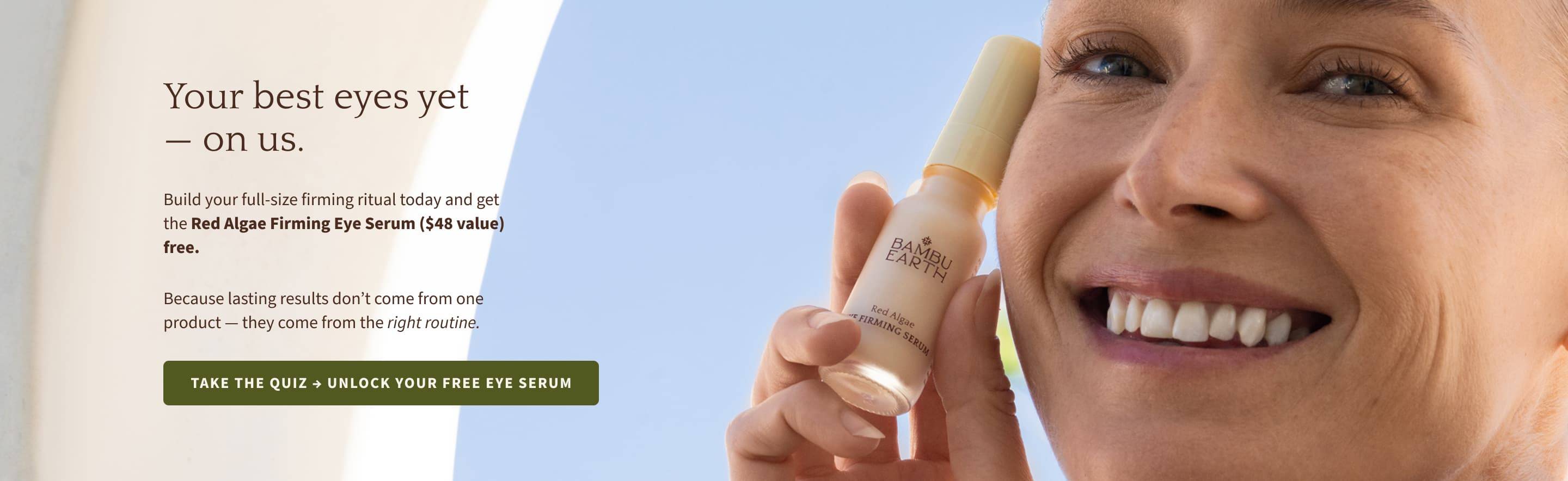 Take our quick skincare quiz to get your personalized recommendation — and receive a full-size Red Algae Firming Eye Serum ($48 value) completely free when you build your full-size firming routine.